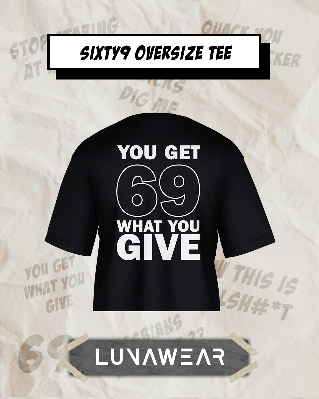 Subtle? Never. This tee makes the joke before you do. A 69 twist on a classic line, served with clean typography and a heavy streetwear edge.